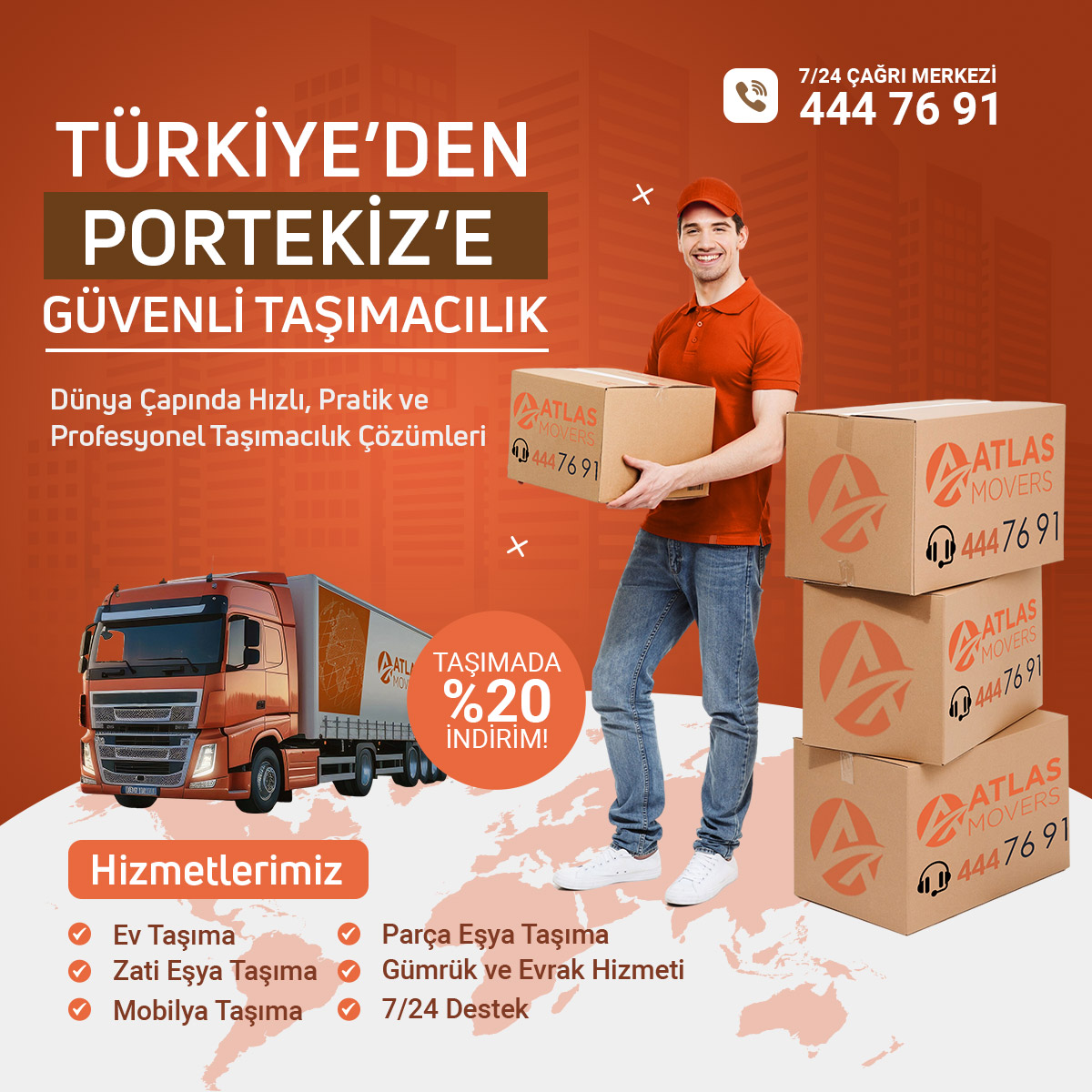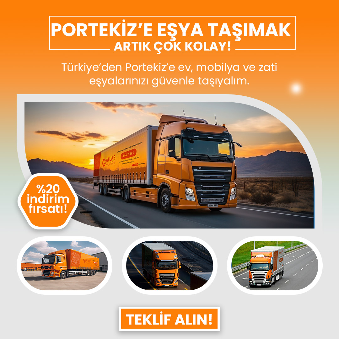 Portekiz’e taşınırken profesyonel destek almak, tüm süreci sorunsuz ve güvenli hale getirir. Atlas Lojistik olarak, Türkiye’den Portekiz’e ev taşıma sürecinizde yanınızdayız. Hızlı, güvenilir ve gümrük süreçlerine hakim uluslararası taşımacılık hizmetimizle; eşyalarınız zamanında ve sorunsuz şekilde yeni adresinize ulaştırılır.
